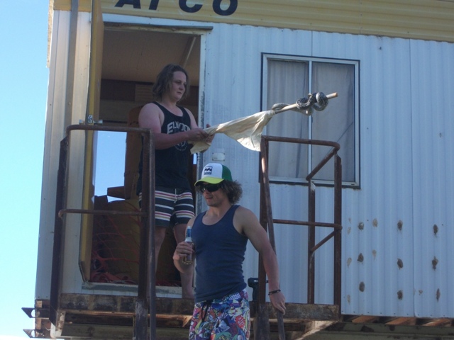 Grif Barker and Andrew Stewart decided to go up and check out the situation while some other brave members of the club waited in safety down on the grass, then a sudden movement in the observers tower and Mr Snake was found (I’m not sure how much pain the boys were in after hitting their heads on the roof).